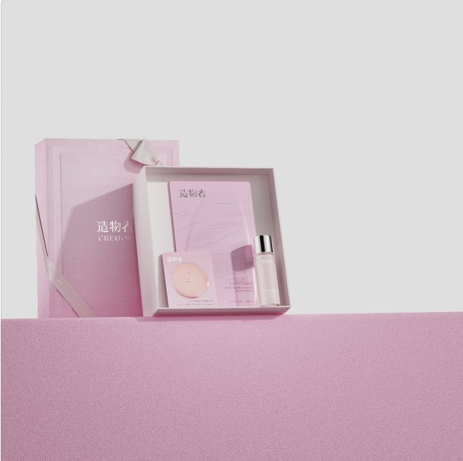 “造物者”品牌的“造物,只为尽物之用”的品牌哲学体现了品牌对材料本身的深度理解与精准调控,电子显微镜下的粉末颗粒呈现高度均匀的球状结构,能够直接影响产品的流动性、贴肤性与成分释放效率。而对自然的敬意是造物者的起点,蚕丝山茶花提取物通过精密萃取与递送技术,真正实现其抗氧化、舒缓修护的生物学意义。